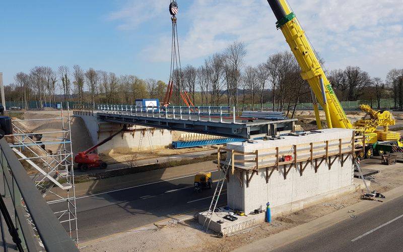 Das Bauwerk wurde im vergangenen Jahr gesprengt. Nun steht die Auflage der ersten Längsträger auf die fertigen Pfeiler an. Betroffen sind die Verbindung von der A43, Fahrtrichtung Wuppertal, auf die A1 in Richtung Köln sowie die Verbindung von der A1 Richtung Bremen auf die A43 in Richtung Münster. Ebenfalls gesperrt ist die Autobahnauffahrt von der Schwelmer Straße auf die A1/A43/A46. Die Bauarbeiten dauern bis Montag 6 Uhr. Eine weitere Sperrung gibt es außerdem auf der A46 Richtung Dortmund zwischen Haan-Ost und Wuppertal-Cronenberg. Da verlegt die Autobahn-GmbH bis Montag, 5 Uhr neuen Asphalt.