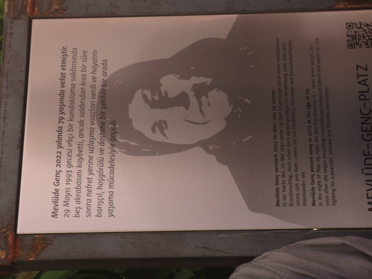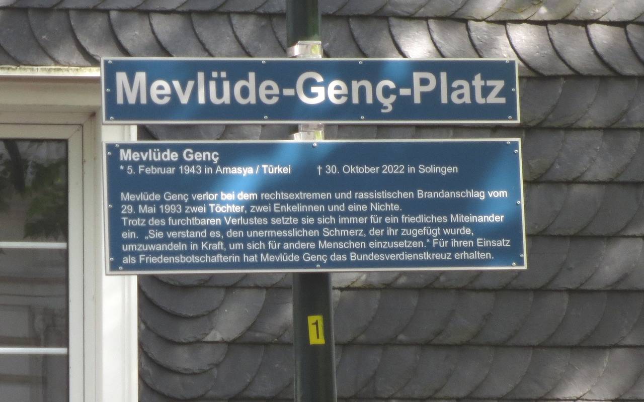 Am Sonntag, 28. Mai 2023, wird der Mercimek-Platz ab 16.30 Uhr in Mevlüde Genç-Platz umbenannt. Frau Genç, die bei dem Brandanschlag zwei Töchter, zwei Enkelinnen und eine Nichte verlor, war am 30. Oktober 2022 verstorben. Sie wurde bundesweit als Versöhnerin und Mahnerin für Toleranz und Verständigung zwischen den Menschen bekannt. Nach der Umbenennung gehen die Teilnehmenden ab etwa 17.30 Uhr bei einem gemeinsamen Mahngang zur Unteren Wernerstraße, dem Ort des Brandanschlags. Dort werden Stelen mit Portraits der Verstorbenen enthüllt, die von der Solinger Jugendhilfewerkstatt erstellt wurde. Der Tag wird mit einem Gebet beendet.