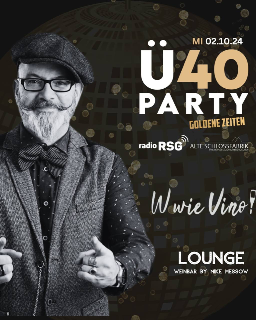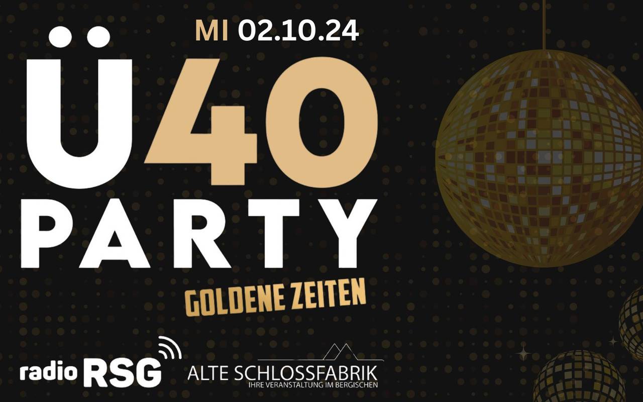 Ihr habt es so gewollt: Die RSG Ü40 Party kommt zurück in die Alte Schlossfabrik in Unterburg. Am 2. Oktober wird wieder zu den besten Hits von den 80ern bis heute gefeiert. Habt ganz viel Spaß, lasst mal wieder die Sau raus oder genießt einfach einen außergewöhnlichen Abend mit guten Freunden, alten Weggefährten und neuen Bekanntschaften. Ü40 wird an der Tür nicht superstreng genommen! Es ist aber ein "teeniefreies" Event, deshalb sollten üblicherweise Ausbildung oder Studium schon mindestens ein Jahrzehnt hinter euch liegen!