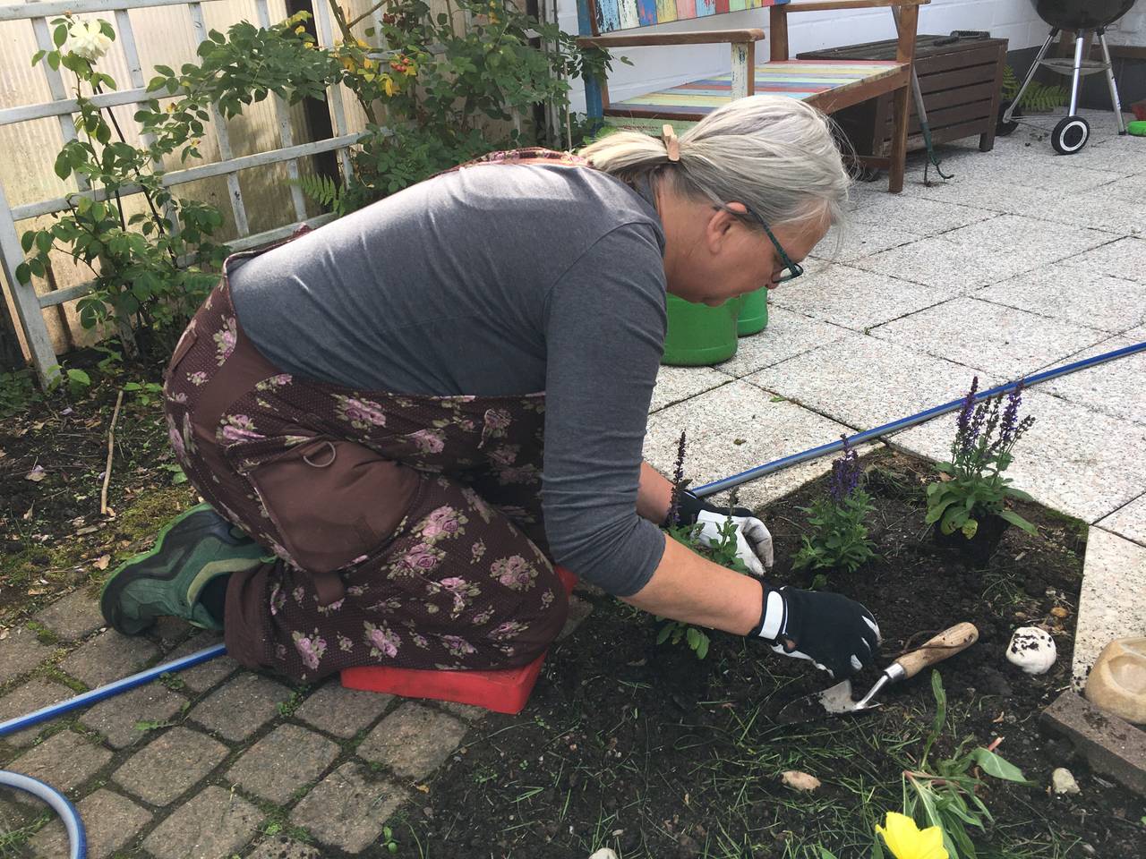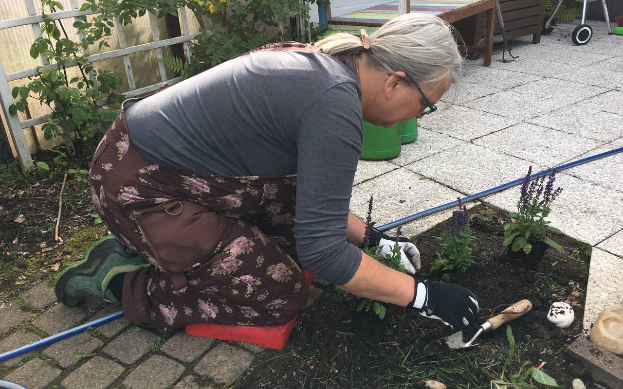 Endlich kommt etwas Blühendes in Claras Garten hinter dem Haus. Zwei Beete hat sie für Stauden vorbereitet. Jetzt zeigt Anja Berger von der Solinger Gartenschule, wie man die Stauden dort korrekt einpflanzt.